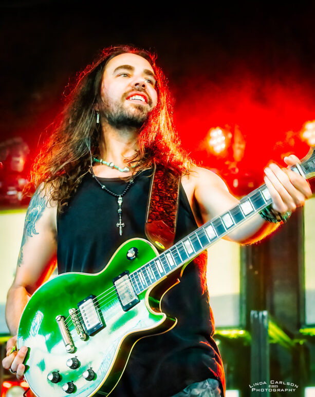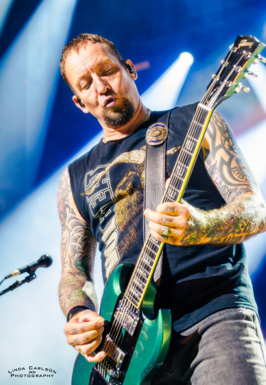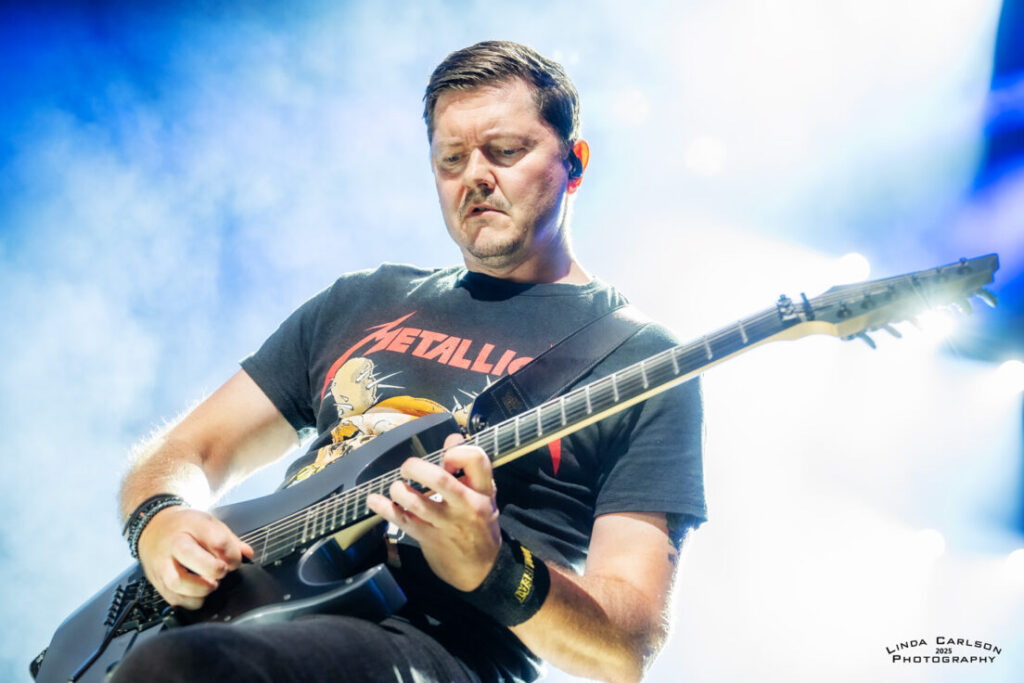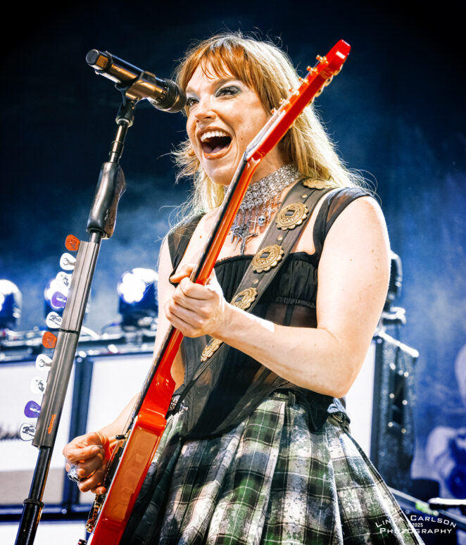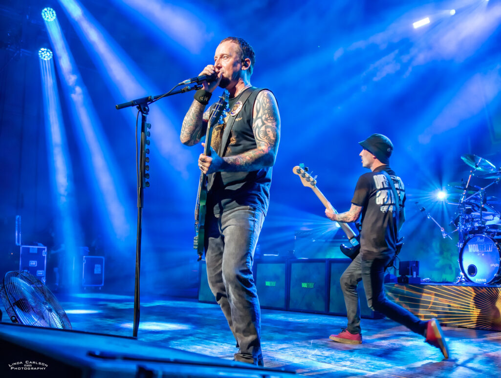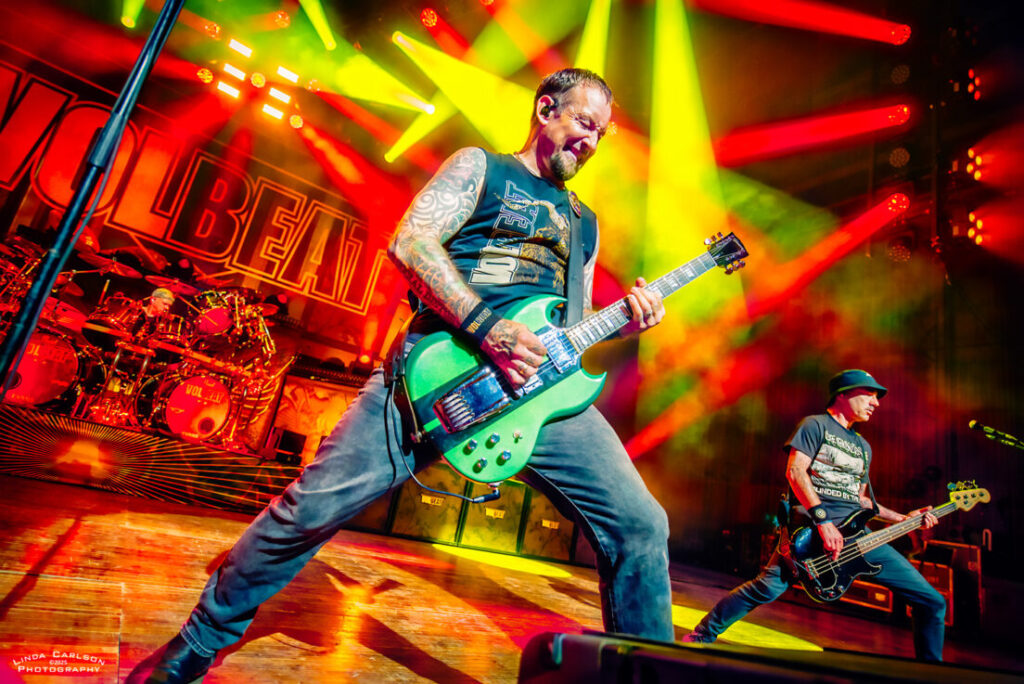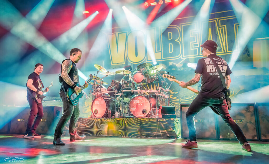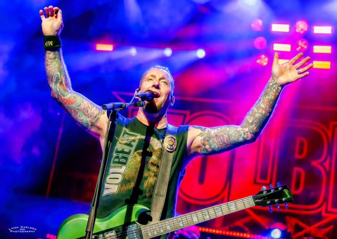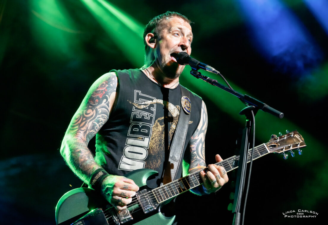 Volbeat // Live @ Riverbend Music Center // 8.17.25 CONCERT REVIEWS FEATURED MUSIC by Adam Spanier - August 25, 2025 Article and photos: Adam Spanier Cincinnati, OH – Volbeat’s Greatest Of All Tours Worldwide is an ambitious tour that began in early June to coincide with the release of their ninth studio album (God of Angels Trust) and rages into mid-November with more than 60 shows. That’s right: sixty shows! The lineup of supporting bands changes throughout the tour, keeping things fresh, with the current segment featuring The Ghost Inside and Halestorm. The Cincinnati crowd was up for it! First on stage was The Ghost Inside, a California metalcore band with Jonathan Vigil (vocals), Zach Johnson (guitar), Chris Davis (guitar), Jim Riley (bass) and Andrew Tkaczyk (drums). Daylight outdoor performances lack dramatic stage lighting, so the band relied on solid musical fervor to entertain the growing crowd. Their seven-song set was lively and well-received. A strong start to the night – mission accomplished! The Ghost Inside Next was Halestorm, a seriously seasoned band that knows how to raise the roof – even a pavilion roof! Lzzy Hale is literally a force of nature. Don’t let that grin fool you – it morphs into a savage sneer at the drop of a hat as she delivers deliciously ferocious vocals that tear into your soul – and then the smile returns. How does she do it? Raw power wrapped in charisma! Halestorm Hale, stylish in shiny high-heeled black boots and a flowing plaid mini skirt, shared that the band’s lineup has been stable for more than 20 years, with brother and band co-founder Arejay Hale (drums), Joe Hottinger (guitar), and Josh Smith (bass). They have clearly honed their craft, and their performance was flawless. Halestorm With songs like “Freak Like Me,” “I Get Off” and “I Miss The Misery” to stir up fans, Hale & company put on a masterful performance that was spectacular. Everyone was ready to rock out even more as Volbeat hit the stage. The band gathered by the drum kit at the start of the set, then separated to their spots on stage, though they continued to move throughout the set. Volbeat Volbeat is Michael Poulsen (vocals, rhythm guitar), Jon Larsen (drums), Kaspar Boye Larsen (bass), and touring lead guitarist Flemming C. Lund. Each musician put forth a memorable performance. Poulsen spoke numerous times to the crowd, and offered an endearing heart symbol with his hands to show his appreciation. Volbeat Volbeat The crowd was treated to an extensive menu of songs that spanned the band’s prolific years, beginning with “The Devil’s Bleeding Crown,” clearly a fan favorite, and closing with “Still Counting.” The Devil’s Bleeding Crown Lola Montez A Warrior’s Call Sad Man’s Tongue Demonic Depression Fallen Shotgun Blues In the Barn of the Goat Giving Birth to Satan’s Spawn in a Dying World of Doom By a Monster’s Hand The Devil Rages On Black Rose Seal the Deal For Evigt Still Counting The tour continues, completing the current USA leg on August 22, and then moving to Europe through the end of the tour. Their last six shows will be in the UK in November to accommodate their vast British fanbase. Check the band’s website for a complete and updated list of tour stops. Check the carousel of images below for more photos from the Cincinnati show. VolbeatVolbeatHalestormVolbeatHalestormVolbeatVolbeatHalestormHalestormHalestormVolbeatHalestormVolbeatVolbeatVolbeatHalestormHalestormHalestormVolbeatVolbeatVolbeatHalestormVolbeatThe Ghost InsideVolbeat
