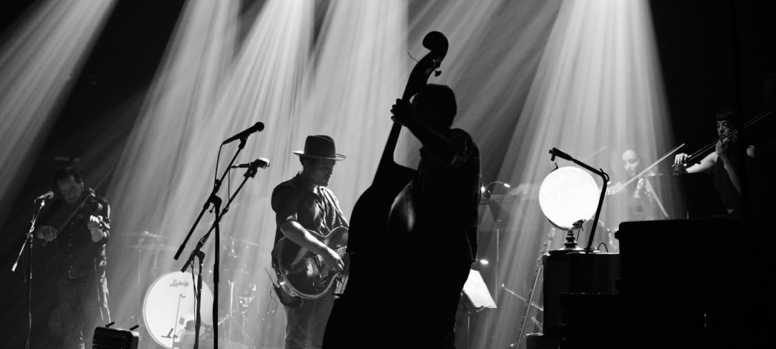 Gregory Alan Isakov // Live @ Webster Hall // 6.23.16 CONCERT REVIEWS FEATURED MUSIC by Gary Flink - June 26, 2016 Article and photos by: Gary Flink New York, NY- South African-born, Colorado-based singer-songwriter, Gregory Alan Isakov, brought his incredible music talents to New York City’s Webster Hall on Thursday night accompanied by his longtime band that he calls his “best friends.” Joining them on stage was The Ghost Orchestra, a symphonic ensemble featuring brass and string players, some of whose members are part of the Colorado Symphony, with whom Isakov recorded his latest album, Gregory Alan Isakov With the Colorado Symphony. Starting the night out and warming the stage first was Mandolin Orange, the Americana duo from North Carolina of Andrew Marlin and Emily Frantz. With Marlin on mandolin, Frantz on fiddle and each sharing duties on guitar and vocals the two draw easy comparisons to Gillian Welch and Dave Rawlings. Their music, deeply rooted in bluegrass, folk and country, and their obvious on-stage chemistry, quickly got the crowded audience engaged and energized. Isakov and his band took the stage shortly before 9p. His lighting director, having spotted me and my camera before the show, warned me that he (Isakov) “likes it dark…really dark” so to be prepared to shoot photos with very low light. Not an atypical situation for most concerts and something every concert photographer is used to, so I didn’t think too much about it… until the show started and I realized he really wasn’t kidding. Having almost no stage lighting at all helped to easily set the mood for Isakov’s typically tranquil songs and his somber ethereal vocals, but is a photography nightmare. The dark stage though certainly helps to paint the pictures and vividly tell the stories within the songs that make up much of Isakov’s musical library, as does the reverb enhanced microphone, which mimics AM-radio distortion, that he pairs alongside a standard mic and frequently sings through. One song of the night, “The Universe,” was even performed on a pitch-black stage with no lighting at all, and the silent reverence and focused attention from the crowd was one of the night’s most touching and memorable moments. The Ghost Orchestra joined Isakov and his band on stage after the 2nd song of the night and spent the remainder of the evening there, accompanying them as they moved through the night’s set list, which included songs from his entire catalogue of previously released albums. Most of Isakov’s songs are about travelling, life on the move and a fleeting sense of togetherness…poetic lyrics about nomadic wisdom and the search to find home and a place in the world to fit in. The Ghost Orchestra provided color and texture that helped to enrich the music and shape the night, yet all of the songs that Isakov offered remained raw and intimate. All in all it made for an incredibly special night.