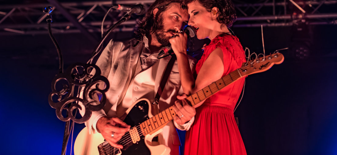In the Valley Below // Live @ Brighton Music Hall // 8.22.17 CONCERT REVIEWS FEATURED MUSIC by Andrew Kopanski - August 30, 2017 Article and Photos by: Andrew Kopanski BRIGHTON, MA – A long 31-stop tour wrapped up tonight with a final performance at the small Brighton Music Hall. This type of venue is where In the Valley Below really shines – at a place where they can be not only intimate with one another on stage but draw the audience into each of their songs. The band is led by Jeffrey Jacob and Angela Gail who are recently married and announced the news to the crowd to a round of applause. The chemistry between these two is infectious and must be experienced live as their harmonies seem entirely different when watching the pair work their magic on stage. Flagship opened for the night and the band from South Carolina made it clear that they too were sad to be leaving the road after the conclusion of the night’s show but were excited to be in Boston for the first time. But they made sure to go all out for this last event – to a dizzying array of strobes the band launched into their high energy set. Through the band’s dancing across the stage, only the bassist remained still, solemnly playing each chord silhouetted by one of the stage lights. After a few songs they took a sharp turn to acoustic with Drake Margolnick picking up a guitar for the first time and leading the band through an excellent cover of Radiohead’s “Fake Plastic Trees.” The set ended with “The Ladder” and the band asking everyone who was scattered through the venue to move forward and share their last song with them. It all ended with the heartfelt words “I won’t climb no…I won’t climb…” During the changeover the stage underwent a complete transformation as nearly all of the equipment from Flagship was emptied, to be replaced with a stripped down version of the same drum set, a keyboard to the side, and a double microphone up front. Making their way on stage to a backdrop of Gregorian monk music, the duo took their places in front of the microphones. Even though the stage was emptied of equipment their presence filled the space, her in a flowing red Gothic gown and him in a crisp white suit. The music abruptly changed as the drums hit and the pair shouted “Stand Up!” as they launched into one of their 2013 album songs of the same name. This album is what they are best known for and for good reason. All of their songs show their immense skill in composition and layering their two voices together. “Dove Season” was a perfect example, with the slow melody putting the audience into a trance as they sang “If this is the end, let’s start all over, start all over again…” Their EP Elephant was recently released with an entirely different feel. These new songs eschew the harmonies and synthesizers for a much heavier sound, with Angela picking up a bright red bass guitar for the first time. The strobe lights lit up again and the band rocked their way through. At first it seemed as awkward as when Marcus Mumford ditched the banjo. It didn’t seem right, but that feeling quickly subsided as the audience adjusted to the new pace.